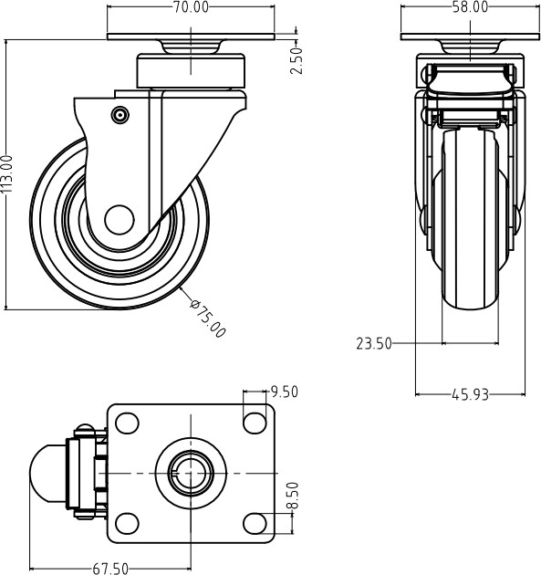 48系列均采用鋼架主體結構,具有更強的承載能力,萬向轉動及輪軸均采用精密靜音滾珠軸承, 轉動靈活靜音效果佳;雙聯動剎車結構,制剎效果好;輪片有輪蓋設計,防塵、防纏繞,保護輪子轉動。