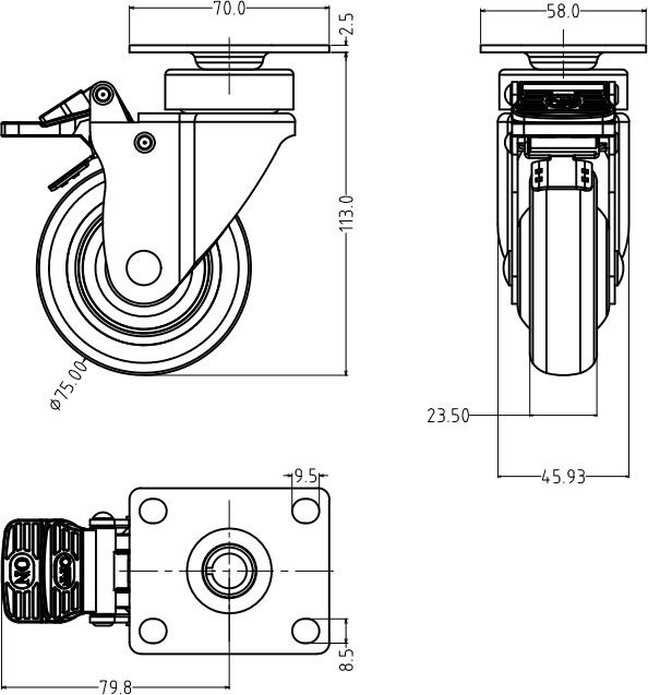 48系列均采用鋼架主體結構,具有更強的承載能力,萬向轉動及輪軸均采用精密靜音滾珠軸承, 轉動靈活靜音效果佳;雙聯(lián)動剎車結構,制剎效果好;輪片有輪蓋設計,防塵、防纏繞,保護輪子轉動。